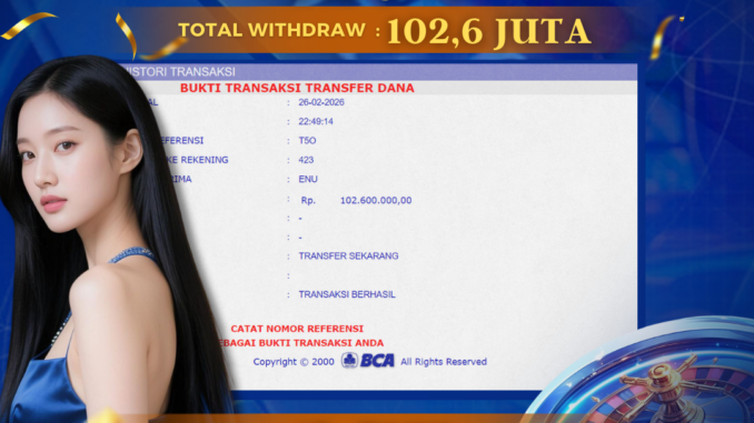 DEWATOGEL mengucapkan selamat kepada user id : TIN*** yang telah berhasil mendapatkan jackpot pada permainan LIVE CASINO DI 24D SPIN. Kemenangan sebesar Rp 102.600.000,-. telah dibayarkan LUNAS oleh pihak dewatogel kepada pemilik user id setelah yang bersangkutan mengisi formulir withdraw. Proses pencairan dana berlangsung sangat cepat hanya dalam waktu 5-10 menit sudah berada dalam rekening pemilik user id. Bukti transfer yang dapat anda lihat adalah bukti SAH / VALID yang langsung di dapatkan melalui bukti transaksi dari Bank yang digunakan untuk pengiriman dana pada rekening pemilik user id. Terima kasih kami sampaikan kepada para pengguna setia DEWATOGEL yang telah menggunakan situs kami, sebagai Bandar Terpercaya yang pastinya membayar semua kemenangan member hingga lunas. Apakah DEWATOGEL PENIPU ? Reputasi “DEWATOGEL TERPERCAYA” sudah sangat melekat. puluhan hingga ratusan ribu pengguna setia DEWATOGEL tetap menggunakan situs terbesar dan terbaik di Indonesia ini. Hapus rasa was-was dan khawatir anda, kemenangan anda berapapun PASTI dibayarkan hingga lunas.